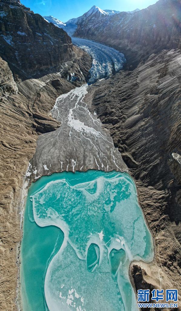 鳥瞰曲登尼瑪冰川(11月27日攝,無人機(jī)照片)。新華社記者 普布扎西 攝