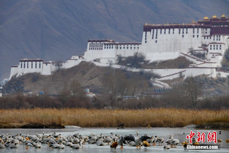 12月24日,拉魯濕地,越冬的候鳥成群結(jié)隊。嚴冬時節(jié),西藏自治區(qū)拉薩市的拉魯濕地國家級自然保護區(qū)成了候鳥越冬的樂園。 中新社記者 貢嘎來松 攝