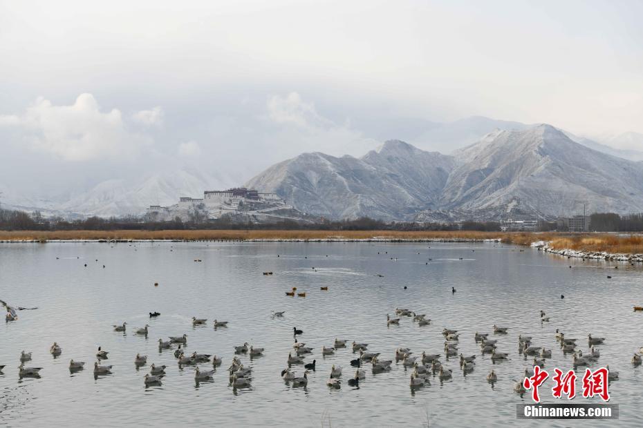 2月21日,從拉魯濕地遠(yuǎn)眺布達(dá)拉宮。當(dāng)日,西藏拉薩市迎來(lái)降雪,雪后的拉薩城區(qū)和周圍群山白雪皚皚,風(fēng)景如畫。 中新社記者 貢嘎來(lái)松 攝