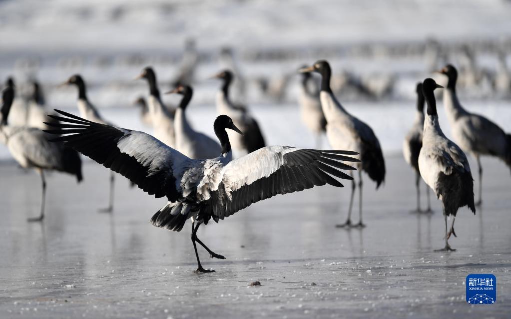 早春時(shí)節(jié),在西藏拉薩市林周縣境內(nèi)越冬的黑頸鶴開始為飛往藏北高原產(chǎn)蛋做準(zhǔn)備。黑頸鶴是國家一級(jí)保護(hù)動(dòng)物。據(jù)了解,近年來,西藏自治區(qū)多措并舉實(shí)施生態(tài)建設(shè)工程,黑頸鶴數(shù)量逐年遞增,目前西藏黑頸鶴數(shù)量超過萬只。