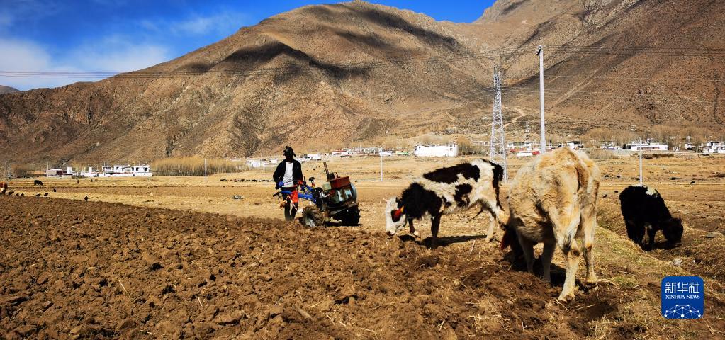 3月26日,堆龍德慶區(qū)古榮鎮(zhèn)加多村的普桑在地里勞作(手機(jī)照片)。普桑今年28歲,家里有耕地30多畝。新華社記者 沈虹冰 攝