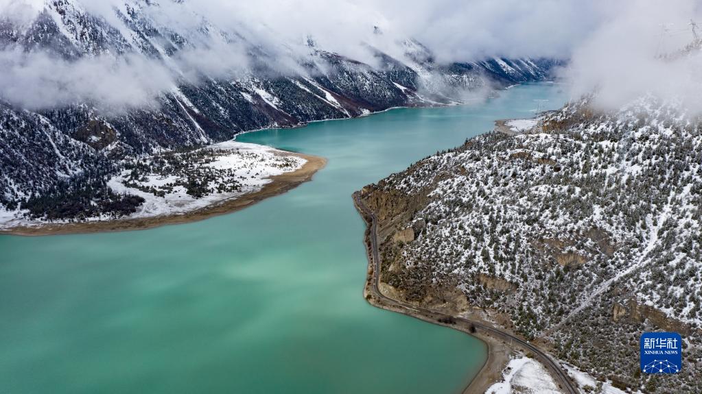 這是無人機拍攝的然烏湖(4月18日攝)。新華社記者 孫非 攝