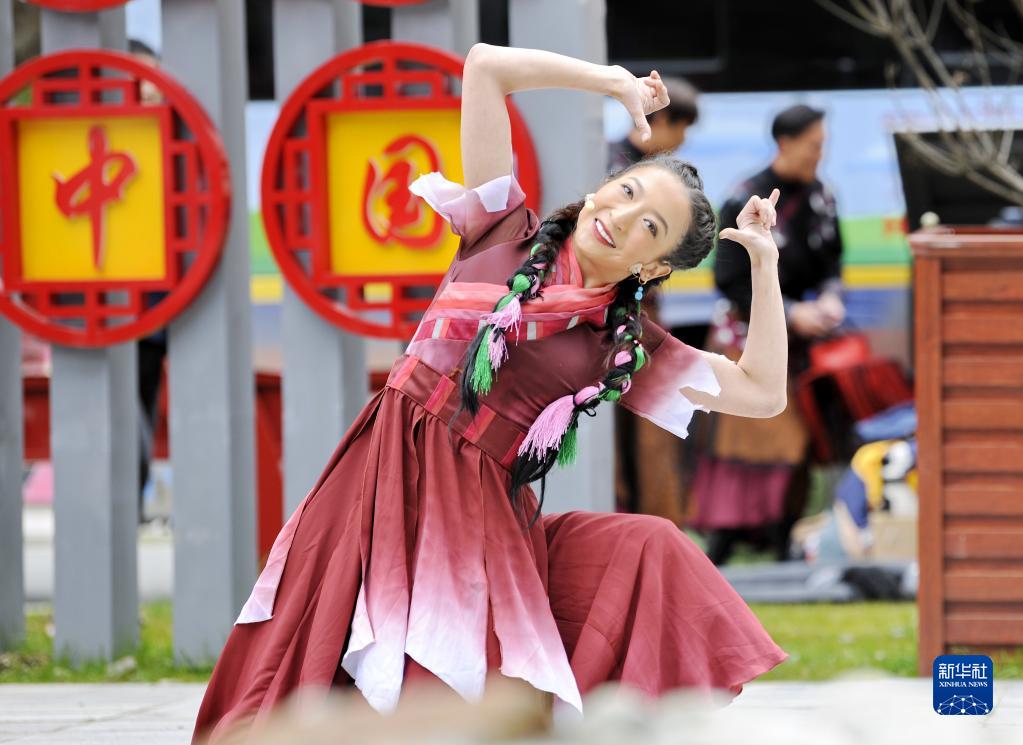 5月31日,演員在隆子縣玉麥鄉(xiāng)文化廣場表演歌舞劇《天邊格?;ā?。新華社記者 張汝鋒 攝