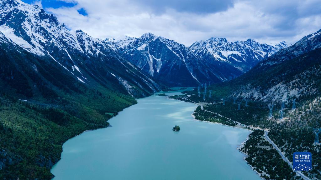 這是5月30日拍攝的然烏湖風(fēng)光(無人機(jī)照片)。新華社記者 陳尚才 攝