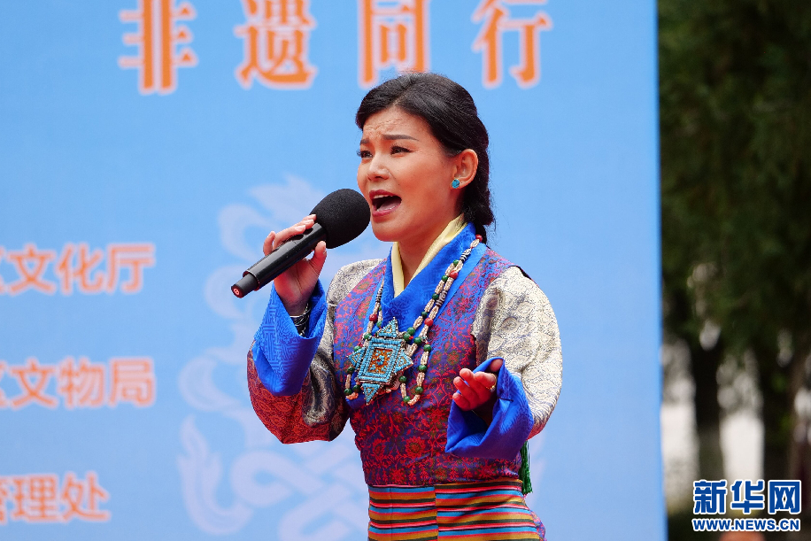 6月11日,拉薩朗瑪自治區(qū)級(jí)傳承人次仁央宗在演唱朗瑪《念波格?!?。新華網(wǎng) 旦增努布攝