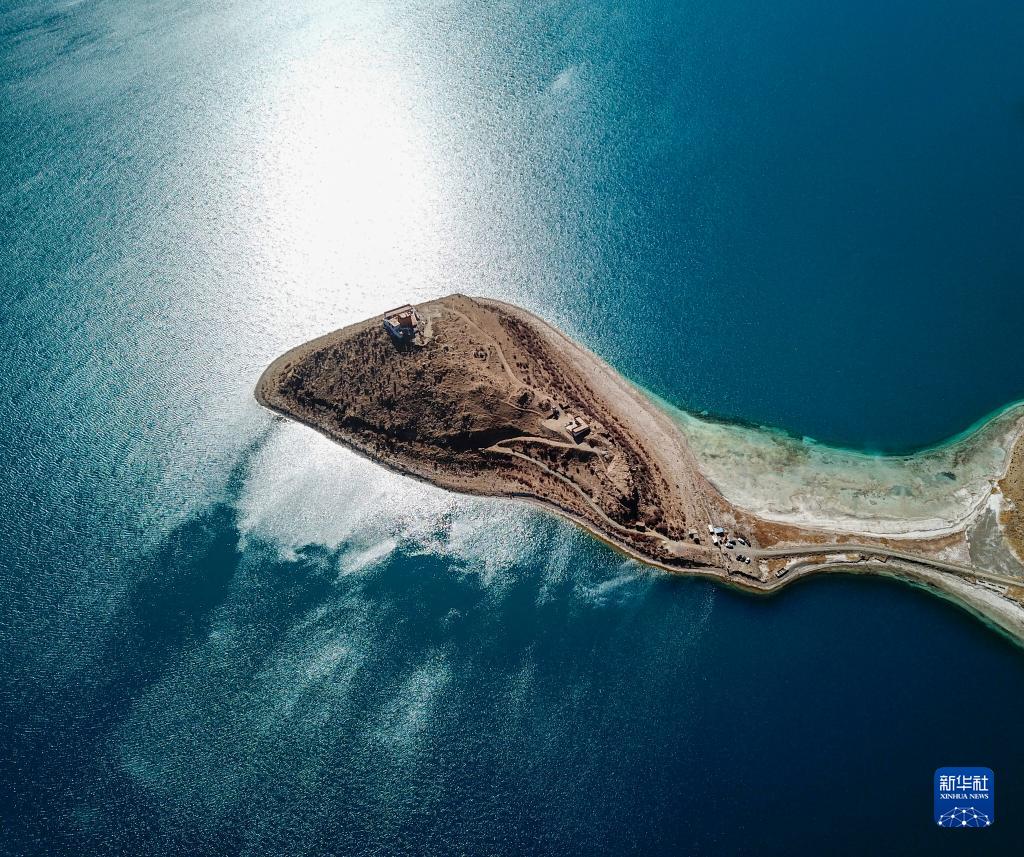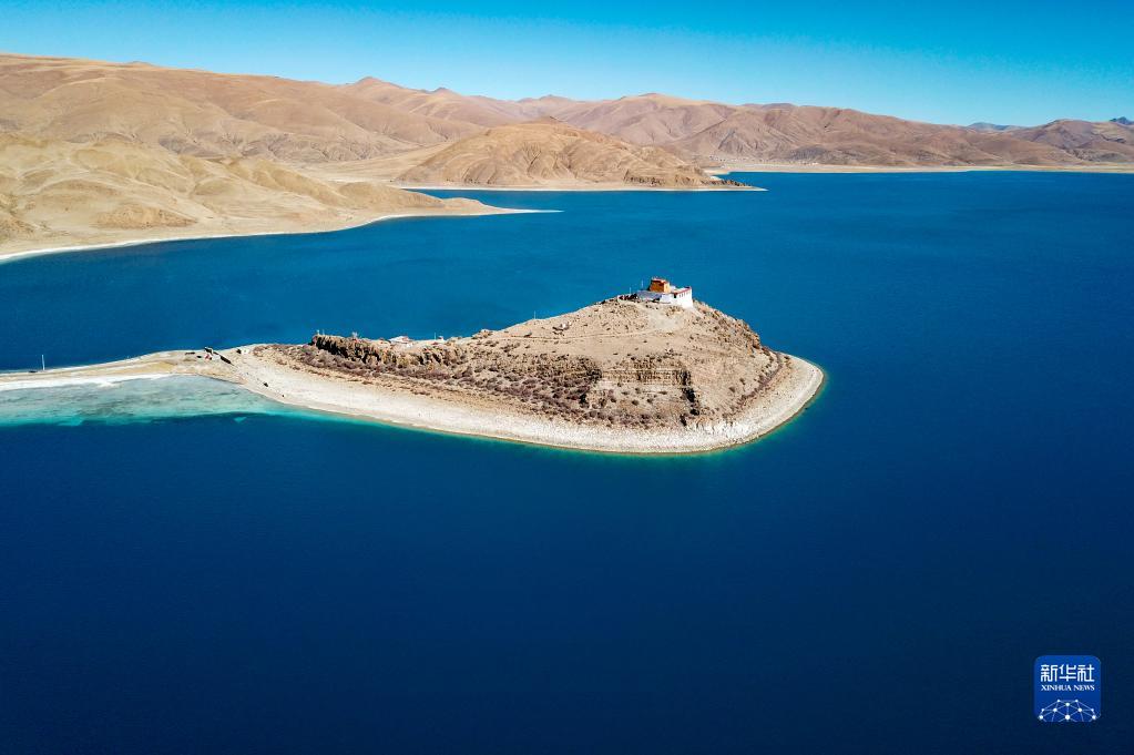 坐落于羊湖北岸一座半島上的日托寺(無人機照片,12月11日攝)。新華社記者 姜帆 攝