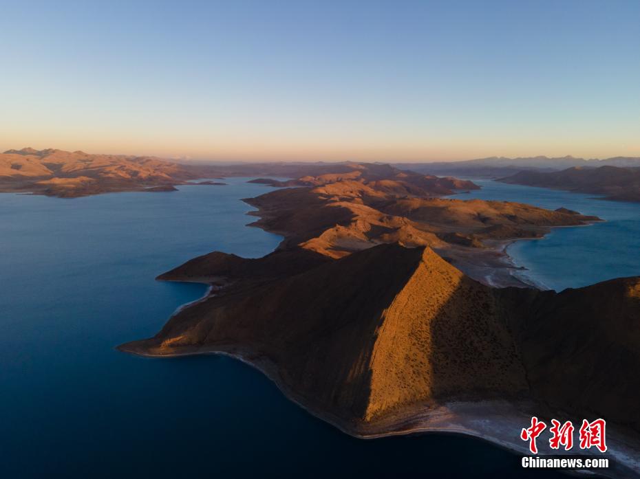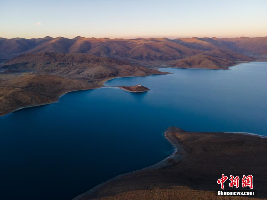 近日,西藏自治區(qū)山南市羊卓雍錯(簡稱羊湖),冬日由于沒有云層遮擋,湖水更顯深藍、孔雀藍。航拍視角下,湖水像巨大的寶石鑲嵌于高原大地,風光壯麗。羊卓雍錯藏語意為“碧玉湖”,湖面海拔4441米,與納木錯、瑪旁雍錯并稱西藏三大“圣湖”。圖為日落后的羊卓雍錯風光。 江飛波 攝