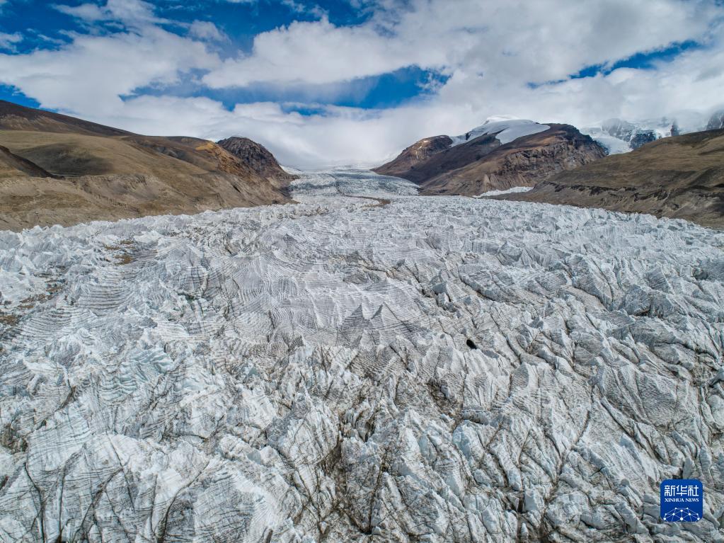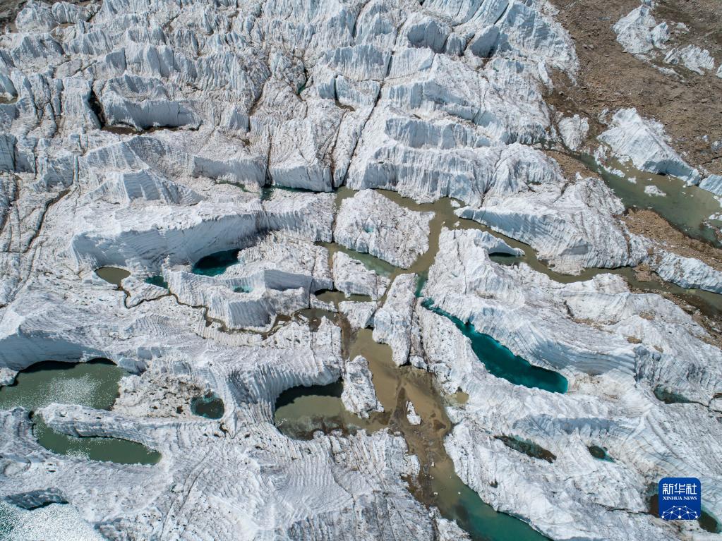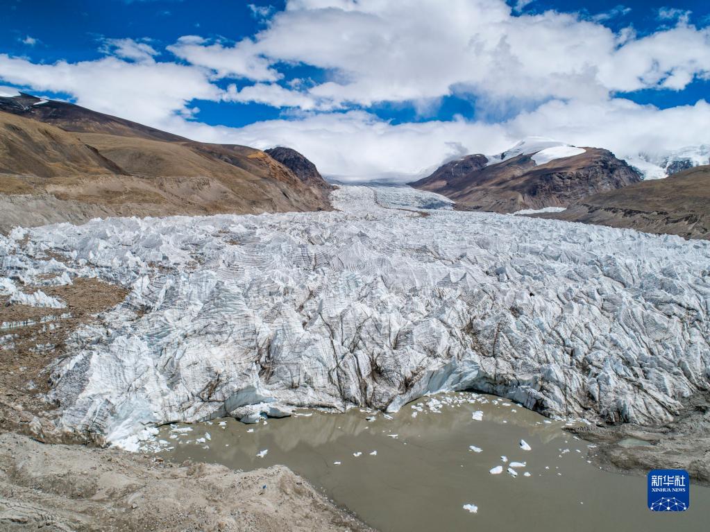 崗布冰川一景(7月4日攝,無(wú)人機(jī)照片)。新華社記者 孫非 攝