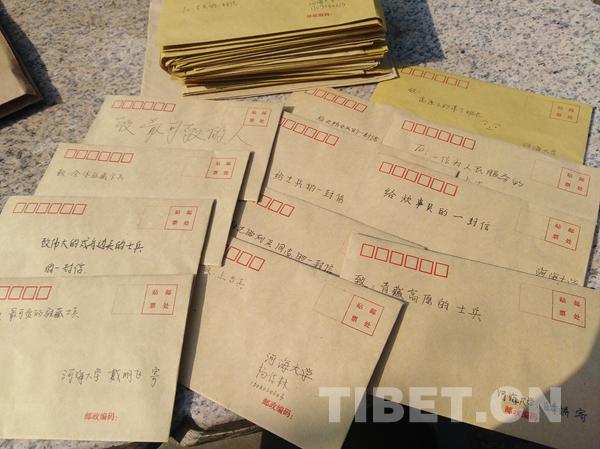 圖為河海大學曾在2017年下半年四次組織學生為西藏戍邊軍人寫的信。