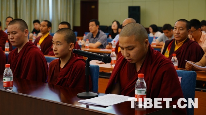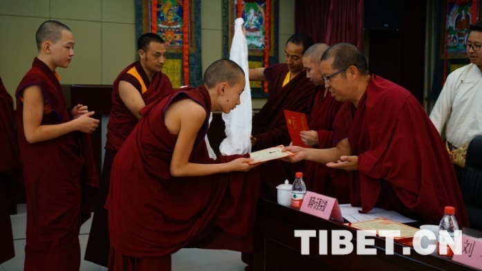 參加此次培訓(xùn)的學(xué)僧,雖然年齡小,但都表現(xiàn)出勤奮刻苦的精神面貌。有7名學(xué)員在西黃寺受沙彌戒,因緣殊勝。其中,云丹凱卻以綜合成績排名第一被評為優(yōu)秀學(xué)員,拿到了獎學(xué)金。他在發(fā)言中表示:“經(jīng)過近一年的努力,我們收獲滿滿,佛學(xué)水平有了很大提升,辯經(jīng)能力得到鍛煉,藏漢雙語水平明顯加強(qiáng)”,“下周我們將前往甘青藏藏傳佛教寺廟進(jìn)行辯經(jīng)實習(xí),現(xiàn)在感到特別高興。在中國學(xué)習(xí),受益匪淺,心懷感恩?!?/p>