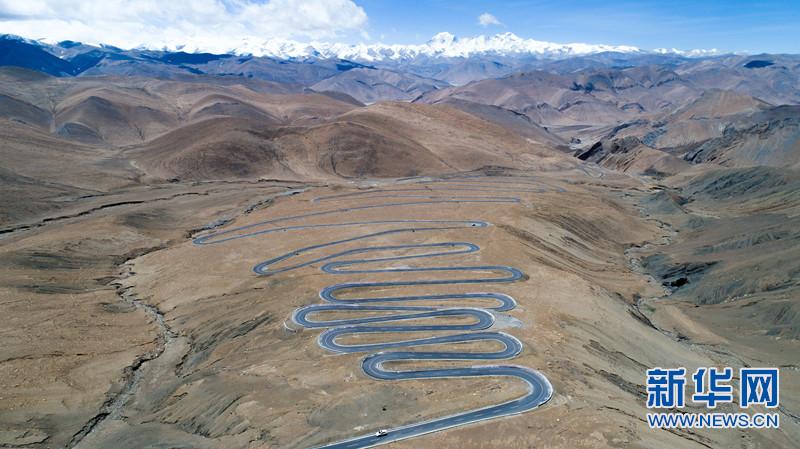 圖為:珠峰公路蜿蜒通向遠(yuǎn)處的喜馬拉雅山脈。圖片來源:新華網(wǎng)