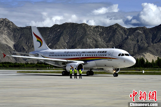 圖為2011年7月26日,西藏航空公司成立暨首航儀式在拉薩貢嘎機(jī)場舉行。圖片來源:中新網(wǎng)