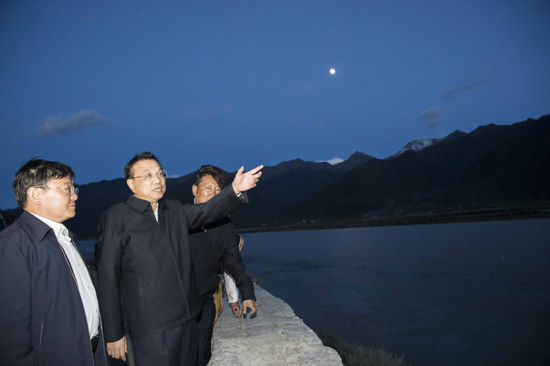 7月25日,李克強總理在西藏林芝米林縣羌納鄉(xiāng)西嘎門巴村考察。來源:中國政府網(wǎng)