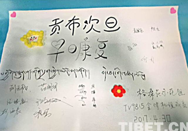 圖為2017年4月30日,TV9815從拉薩到北京執(zhí)飛途中,格?;ò嘟M護(hù)送因燒傷急需赴京救治的1歲零7個(gè)月的貢布次旦一家,并為其募款。藏航供圖