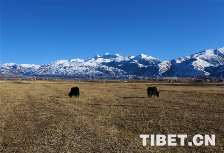圖為冬季草原上的牦牛。