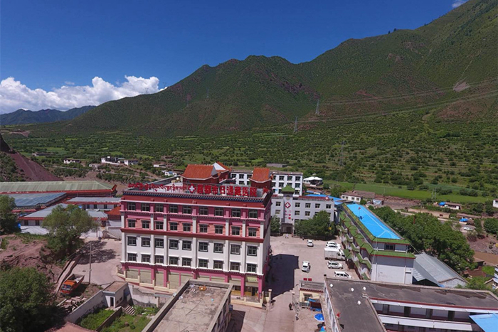 圖為山谷中的西藏昌都市日通藏醫(yī)院,內(nèi)設(shè)藏醫(yī)藥浴室。