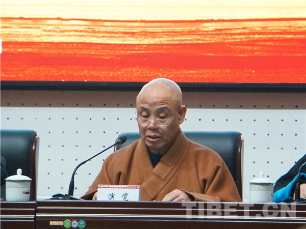 圖為演覺法師發(fā)言。