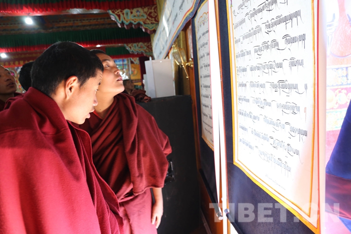 此次活動共征集書法作品80余幅,包含藏文、梵文、漢文、英文,其中藏文書法當(dāng)中又有烏金和烏梅體、草書體和古藏文體等多種書法類型,不僅展現(xiàn)了藏文書法精美多樣的字體和悠久歷史,而且表達(dá)了全寺僧眾深切緬懷大師的至真感情和銘記大師教誨,積極發(fā)揚藏傳佛教愛國愛教優(yōu)良傳統(tǒng)的堅定信心。(中國西藏網(wǎng) 記者/索朗加措、趙耀 圖片由扎什倫布寺寺管會提供)