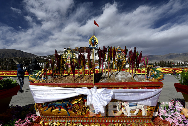 拉薩市園林局負(fù)責(zé)人介紹,3000多盆仿真花卉和4萬余束紅黃兩色的絹花用在布達(dá)拉宮廣場(chǎng)中心位置進(jìn)行地面裝飾,營造春節(jié)、藏歷新年的濃厚氛圍。