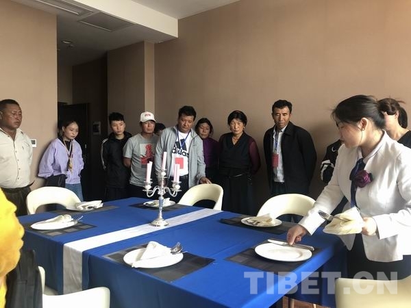 圖為培訓(xùn)班學(xué)員學(xué)習(xí)西餐擺臺