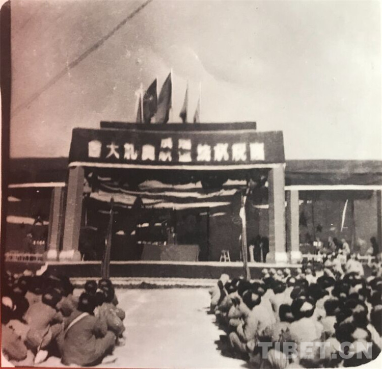 圖為機(jī)場(chǎng)修建政治部洪(流)主任致開幕辭。 翻拍:龍真多吉