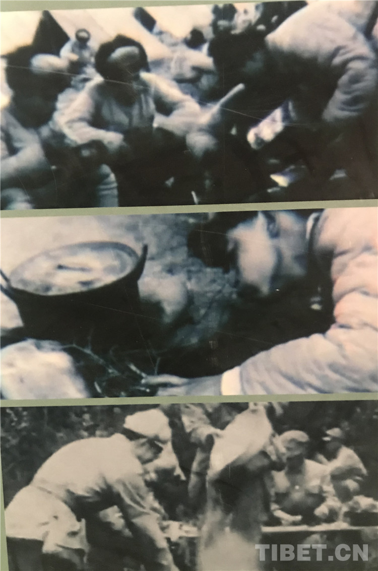 圖為修路和建設(shè)機(jī)場(chǎng)休整期間,戰(zhàn)士們熱火朝天,生火做飯的場(chǎng)景。 翻拍:龍真多吉