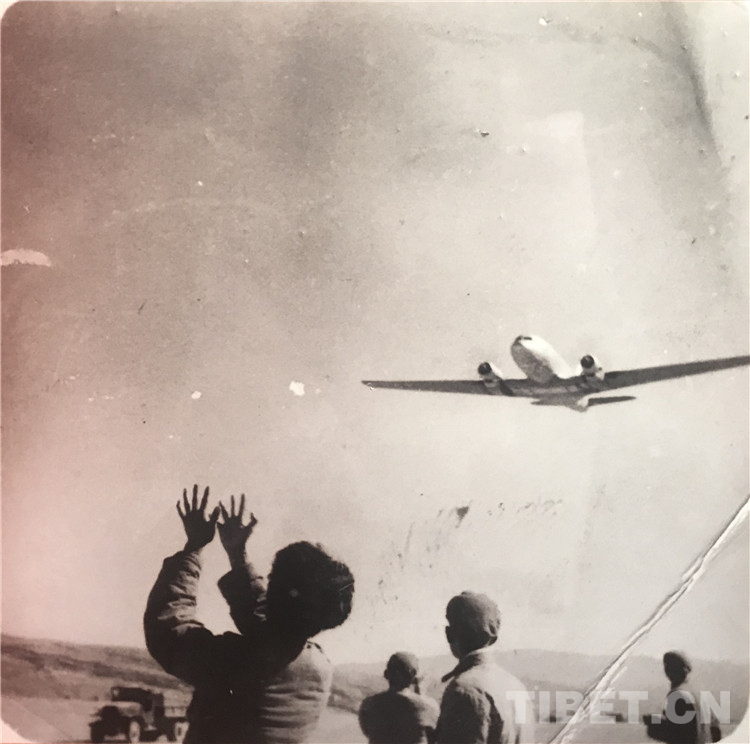圖為空軍飛離甘孜機(jī)場(chǎng)。 翻拍:龍真多吉