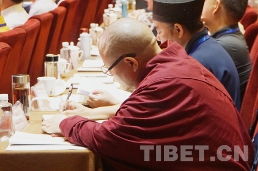 圖為達(dá)扎活佛聽專家講座時(shí)做筆記。