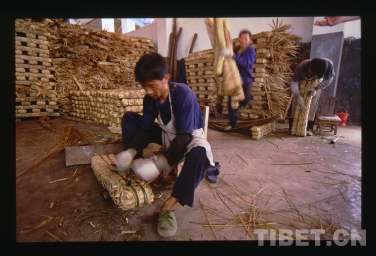 圖為雅安某茶廠每年生產(chǎn)大量的磚茶供應西藏