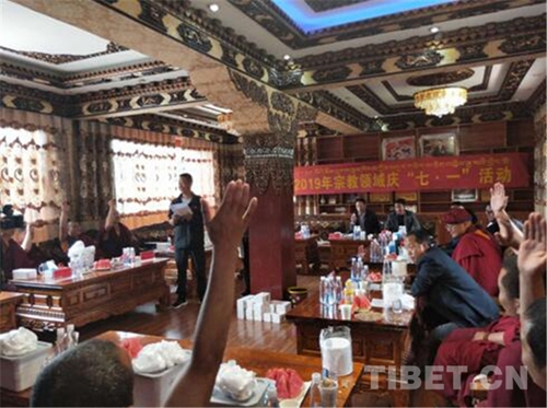 舉行升國旗唱國歌儀式。7月1日上午十點(diǎn)整,巴宜區(qū)統(tǒng)戰(zhàn)民宗、工商聯(lián)黨員干部、駐寺黨員干部、寺廟僧尼、珠曲登村和簡切村村民共70余人在珠曲登寺舉行升國旗儀式,雄壯嘹亮的國歌聲響徹全場。