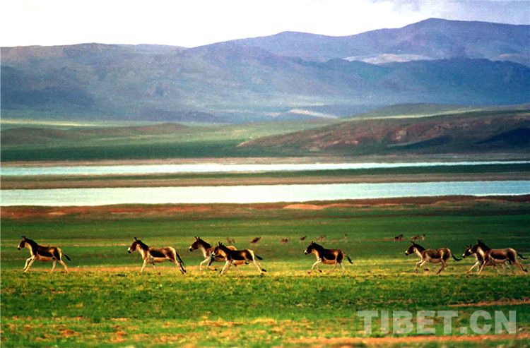 這是奔跑在羌塘國家級自然保護區(qū)的國家一級保護動物藏野驢。(唐召明2001年攝)