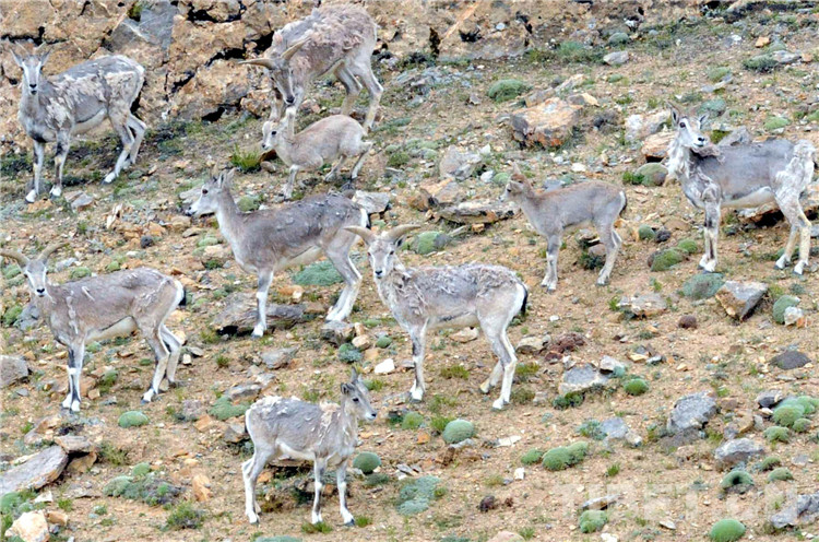 這是生活在羌塘國家自然保區(qū)的國家二級保護動物巖羊。(唐召明2009年8月9日攝)