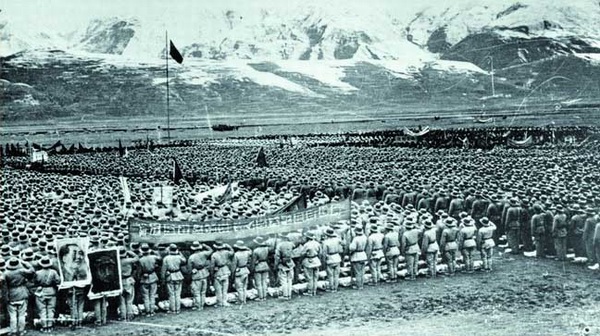 圖為修建進(jìn)藏公路的部隊(duì)進(jìn)行動(dòng)員大會(huì)。圖片來(lái)源:人民網(wǎng)