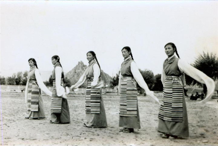 圖為1955年文工團(tuán)在拉薩表演藏族舞蹈。圖片由李俊琛提供。
