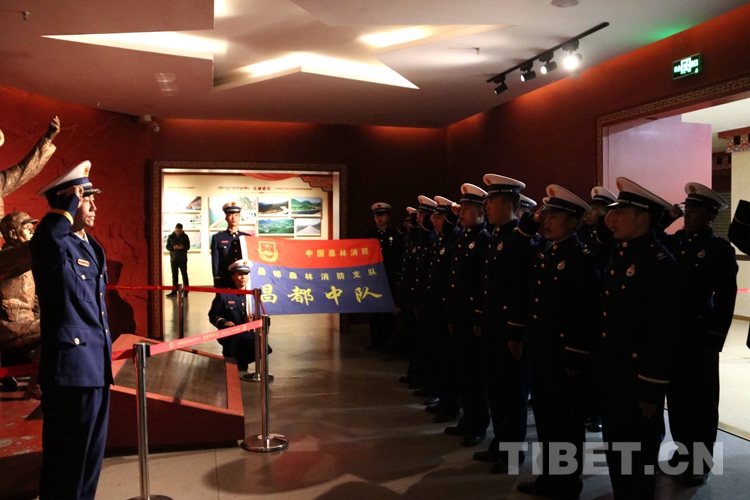 圖為西藏昌都森林消防中隊在國家綜合性消防救援隊伍組建一周年之際,組織全體指戰(zhàn)員參觀昌都市博物館并開展重溫隊伍誓詞活動