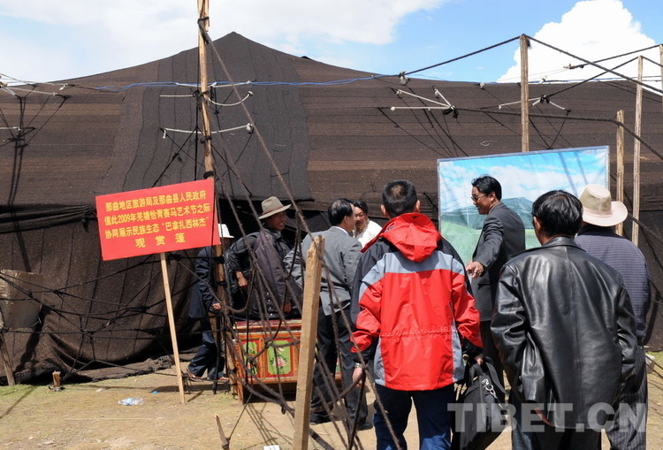 這是人們?cè)谂抨?duì)參觀那曲賽馬會(huì)所展示的巨大黑色牦牛毛帳篷。這頂大“黑帳”占地面積3600平方米、內(nèi)部有效面積666平方米,可供上百人自由活動(dòng)(唐召明2009年8月12日攝)