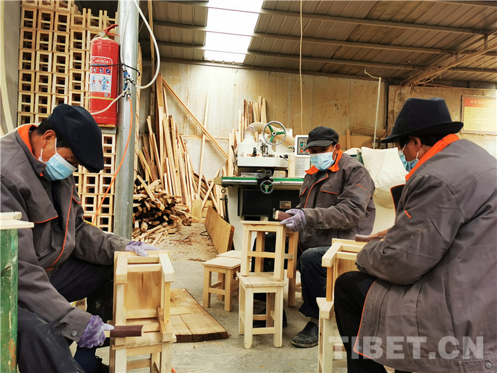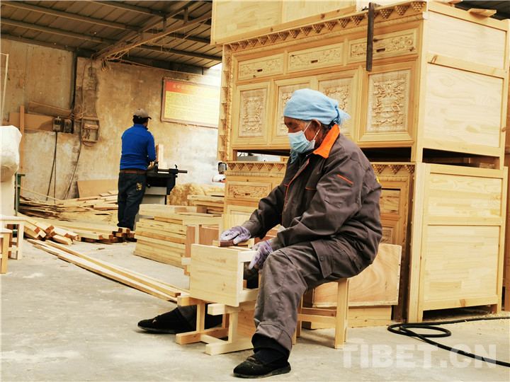 當(dāng)記者走到坐在家具工廠認(rèn)真工作的南拉加身邊時(shí),他一手扶著拐杖慢慢起身問候。記者采訪時(shí)了解到,他家原先在常牧鎮(zhèn)附近的豆后漏村,家中只有他一人,生活拮據(jù)。今年56歲的他,2015年開始在貴德縣東方殘疾人福利有限公司工作,說起現(xiàn)在的生活,他微笑著說:“現(xiàn)在呀,我們和老板一起住,一起吃飯。每個(gè)月工資2300元,再加上每逢節(jié)假日,公司老板都會(huì)給我們發(fā)慰問品、慰問金,很滿足?!?/p>