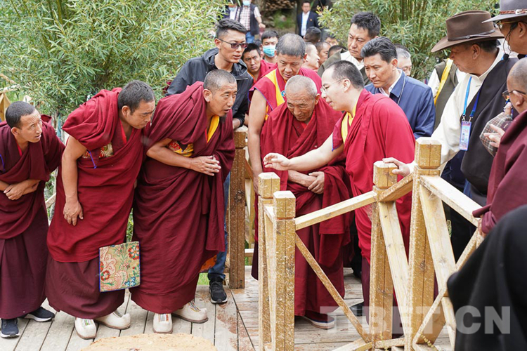圖為十一世班禪察看藏香產(chǎn)品 攝影:鄭朔