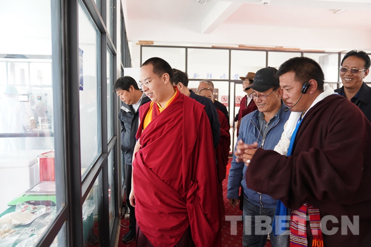 在調(diào)研中,十一世班禪關(guān)心的問題得到了很好的解答,他頻頻點(diǎn)頭表示贊許。從娘亞牦牛原種場(chǎng)了解到養(yǎng)殖基地的建成運(yùn)營(yíng)情況后,十一世班禪立刻趕往公司加工車間和銷售店,觀摩酥油、奶制品制作過程,了解銷售、帶動(dòng)牧民增收情況。十一世班禪希望公司能夠?qū)⒓卫璧淖匀粴夂颉⑼恋貤l件等實(shí)際情況與科學(xué)實(shí)驗(yàn)相結(jié)合,樹立好家鄉(xiāng)民族特色品牌,為草原生態(tài)保護(hù)和畜牧業(yè)發(fā)展探索經(jīng)驗(yàn)。
