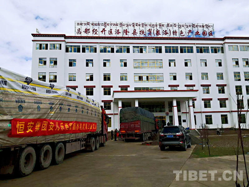 圖為裝載捐贈(zèng)品的貨車抵達(dá)洛隆縣