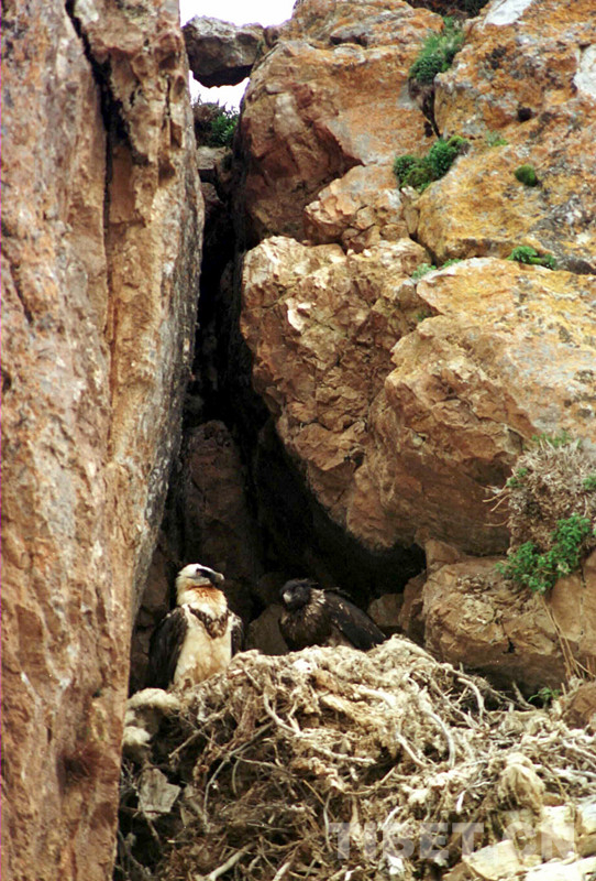 科考人員在科考中發(fā)現(xiàn),在扎西多半島西北角突兀懸崖峭壁上有一個(gè)很大的胡兀鷲雜草屋,只見雌鳥飛出飛進(jìn),在給4個(gè)月大小的雛鳥喂食。這種頭頂和后頸為白色、頭頂周圍有一圈黑羽,長(zhǎng)有胡須、腹部為褐色的胡兀鷲,體長(zhǎng)1米多。