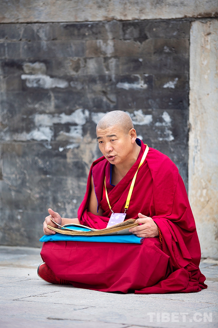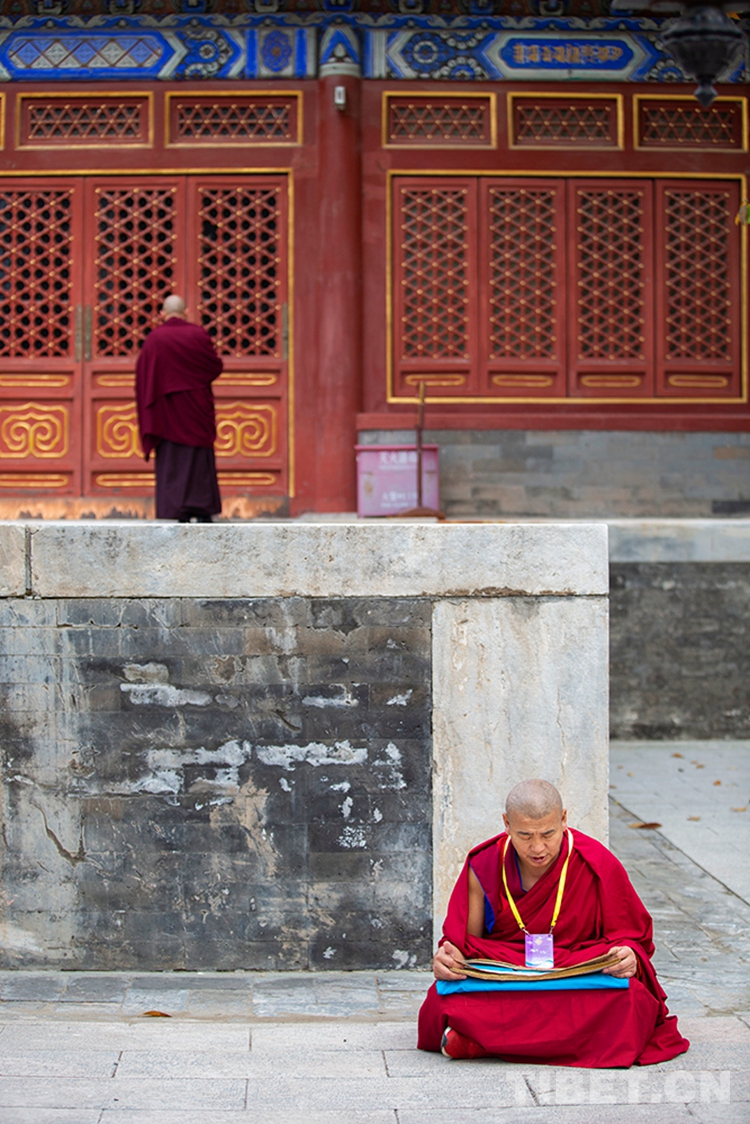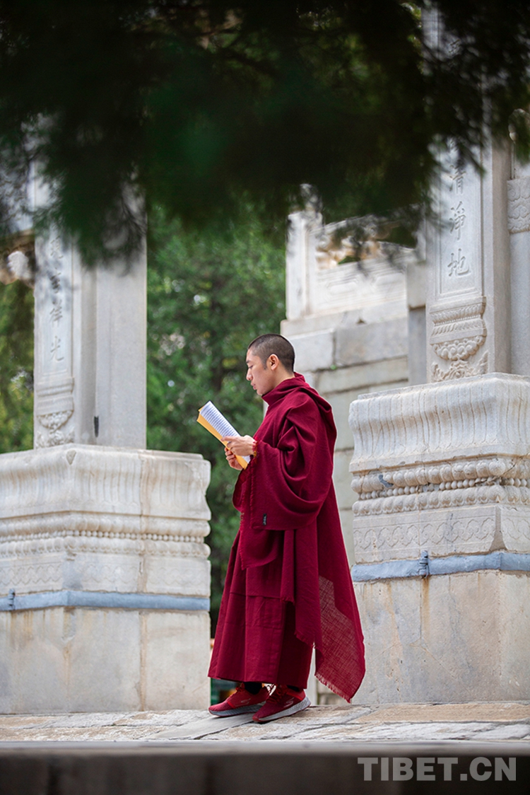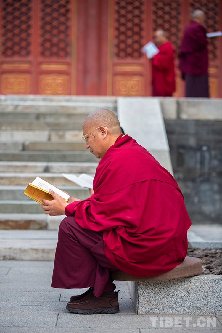 中國西藏網(wǎng)訊 10月29日,深秋的清晨,位于北京西黃寺的中國藏語系高級佛學(xué)院內(nèi),古柏蒼蒼,清凈肅穆。還有半個小時,2020年藏傳佛教第十六屆“拓然巴”高級學(xué)銜畢業(yè)考試辯經(jīng)考試就將準時開始。等待參加辯經(jīng)考試的學(xué)僧們,正在西黃寺大殿前誦經(jīng),抓緊時間為考試進行最后的準備。大家或席地而坐,或立定一隅,或踱步前行,梵唱聲聲,余音繞梁。(中國西藏網(wǎng) 攝影/許娜 編輯/周晶)