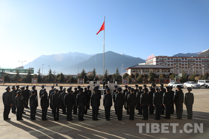 圖為林芝邊境管理支隊機關舉行升旗儀式 攝影:劉安震鏞
