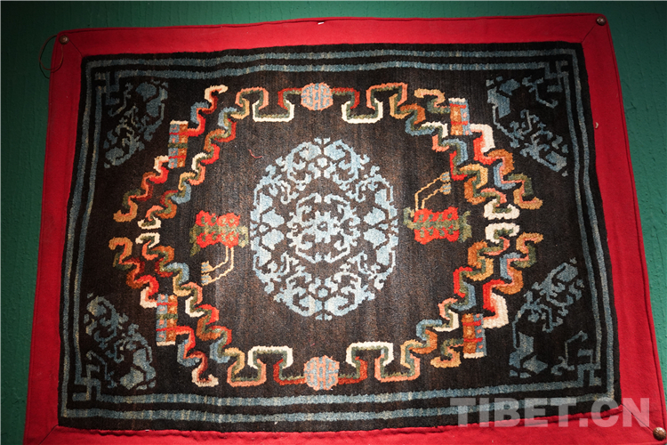 習(xí)慣上,藏毯被分為寺廟用毯與世俗用毯。寺廟用毯為:禪毯、幡毯、柱毯、金剛法舞毯、門簾毯等。世俗用毯為:室內(nèi)卡墊、地毯、馬鞍毯、馬褥子、驢遮面、坐墊等,與雪域高原獨特的生活方式,民族文化息息相關(guān)。