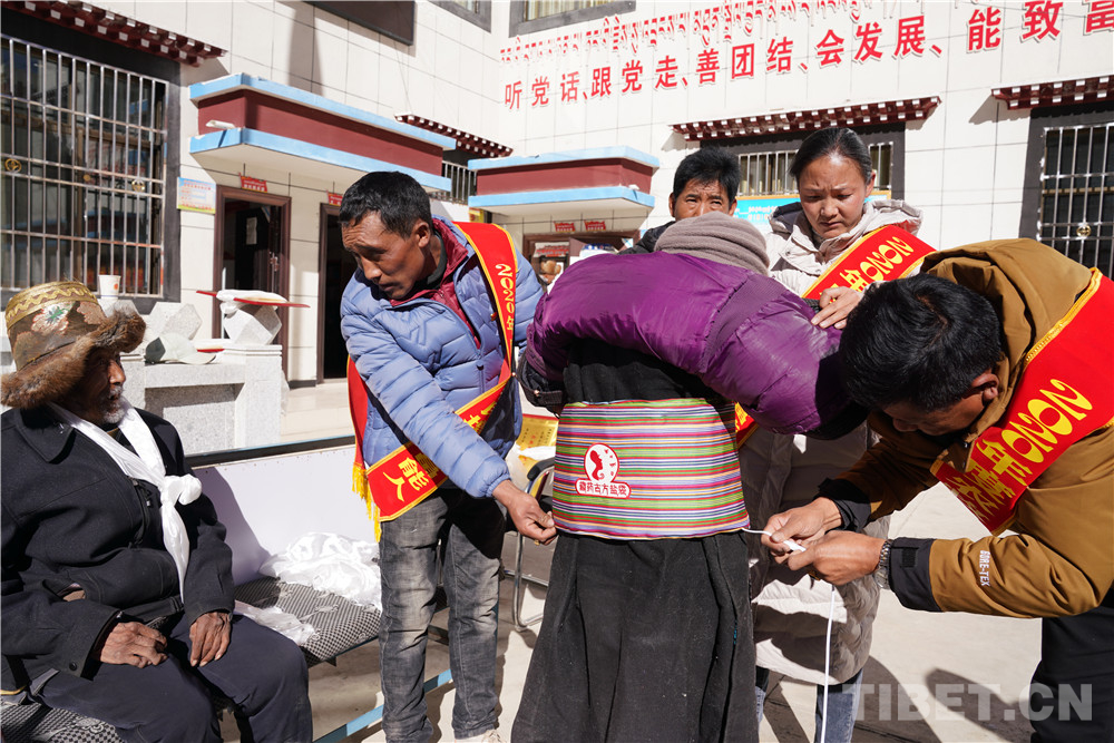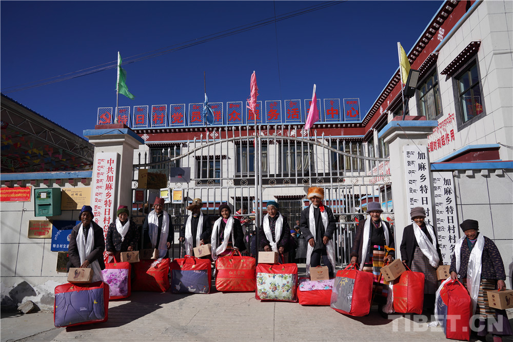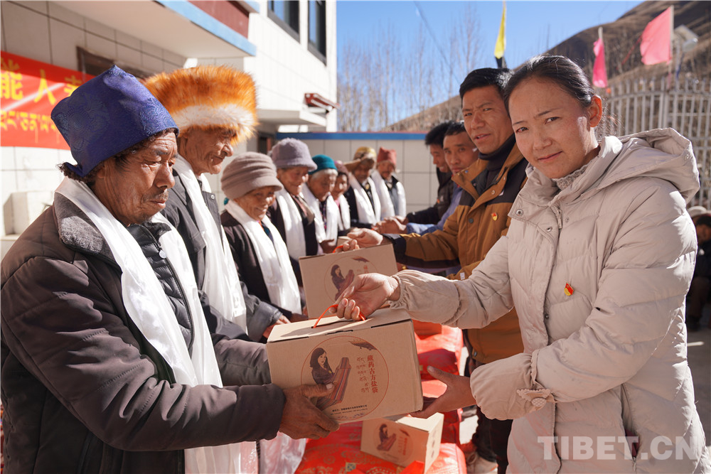 先富起來的人們集中慰問了村里10名老人,送去了10條被子、10套藏藥古方鹽袋等價(jià)值近3000元的慰問品,得到了村民們的贊譽(yù)。