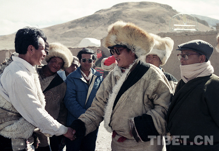 辦事處所在地已成為頗具規(guī)模的小城鎮(zhèn),與我前兩次來相比,條件已明顯改善?!霸L問團(tuán)”的成員們決定再到牧民家里看個(gè)究竟。時(shí)任那曲地區(qū)行署專員,后任西藏人大常委會(huì)常務(wù)副主任的土登才旺和地委副書記明加帶領(lǐng)各縣領(lǐng)導(dǎo),驅(qū)車行程八九百公里,訪問了七個(gè)鄉(xiāng)的牧民家庭。當(dāng)突如其來的一行人進(jìn)入申亞鄉(xiāng)一村牧民索次家時(shí),45歲的主人有點(diǎn)不知所措,又是倒酥油茶,又是端兩大盆熟肉和油炸果子請(qǐng)大家吃。