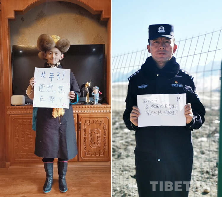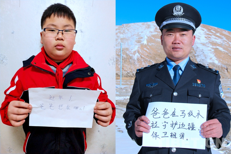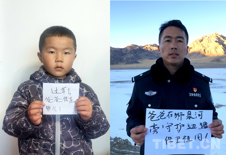 這是一張拼版照片,孩子名叫平措扎西,今年5歲,3年沒和爸爸一起過年了,今年和媽媽在日喀則過年。爸爸格瑪次仁是西藏出入境邊防檢查站阿里邊境管理支隊扎西崗邊境派出所民警,新春將至,他和他的戰(zhàn)友堅守在海拔4400米、位于獅泉河下游的典角村,默默守護著邊境一線的安全穩(wěn)定。