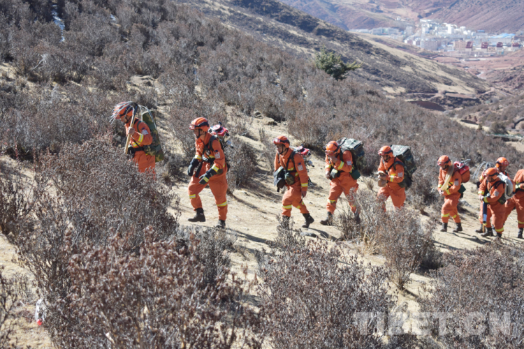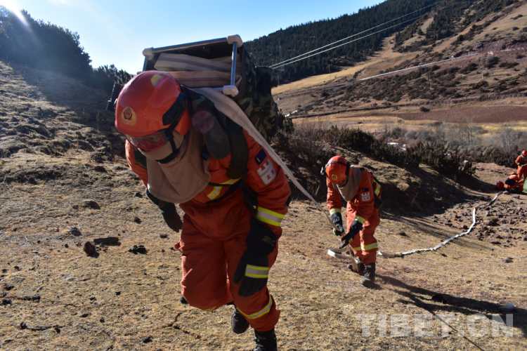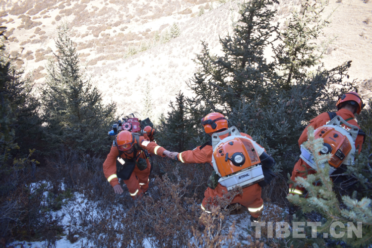 圖為左貢縣森林消防中隊駐芒康分隊指戰(zhàn)員團結(jié)互助共同前行