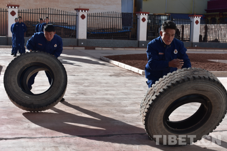 圖為左貢縣森林消防中隊駐芒康分隊指戰(zhàn)員進行體能訓(xùn)練