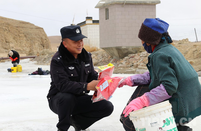 在群眾家里、街道上、冰河上,直克鄉(xiāng)邊境派出所民警向群眾送出了一面面嶄新的國(guó)旗,鮮紅的國(guó)旗映紅了每個(gè)人的臉龐,將揚(yáng)帆啟航新征程的祈愿深入每個(gè)人的心中。直克鄉(xiāng)索白村退伍老兵朗加激動(dòng)地說(shuō):“國(guó)旗是祖國(guó)的象征和標(biāo)志,需要共同守護(hù)。在雪域高原上,你們戰(zhàn)嚴(yán)寒、耐寂寞,披星戴月、頂風(fēng)踏雪,燃起了警民‘共話護(hù)邊’的愛(ài)國(guó)熱情,謝謝你們用實(shí)際行動(dòng)溫暖著我們。”